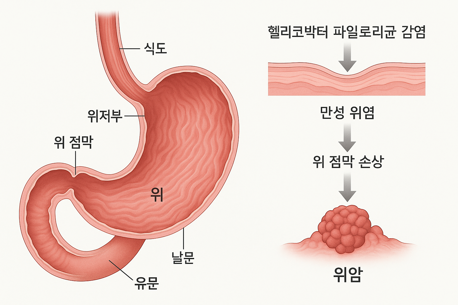 👉 이미지 : “위 구조 해부도 + 위암 발생 메커니즘 도식화”