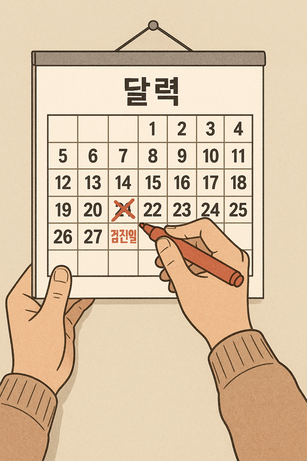 📷 [이미지: 달력에 ‘검진일’ 표시하는 그림]