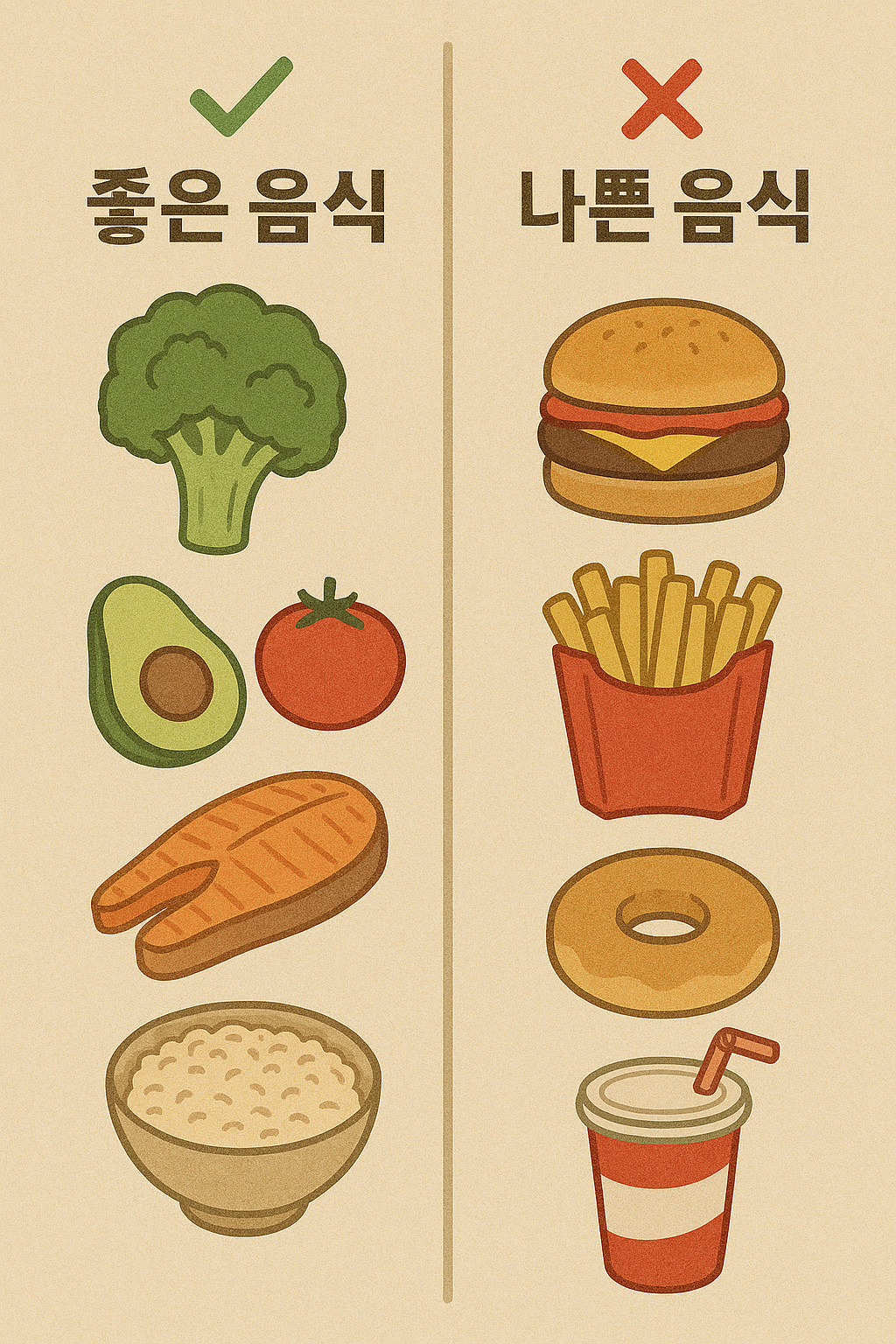 📷 [이미지: ‘좋은 음식 vs 나쁜 음식’ 도표]