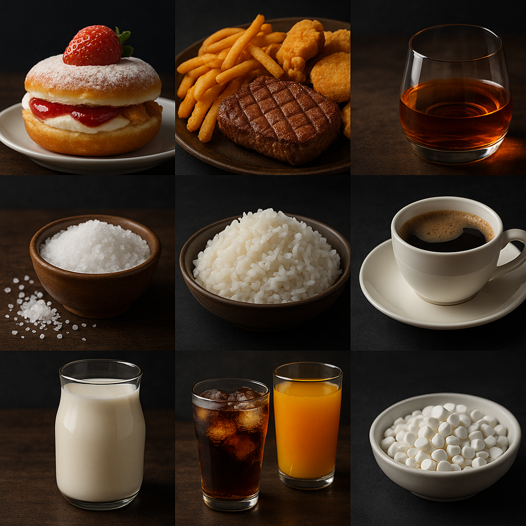 - 이유: 정제된 탄수화물은 혈당을 급격히 상승시켜 인슐린 분비를 촉진합니다. 이는 체내 염증 수치를 높이고, 면역력을 저하시키는 원인이 될 수 있습니다.